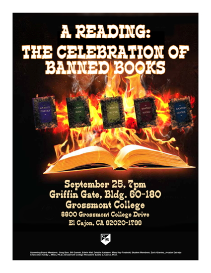 The annual Fall Reading Series presents a season of events celebrating literature, showcasing award-winning authors, and honoring the inspiration to write. Events are sponsored by the English Department and Creative Writing Program of Grossmont College, as well as a variety of other campus agencies and programs.