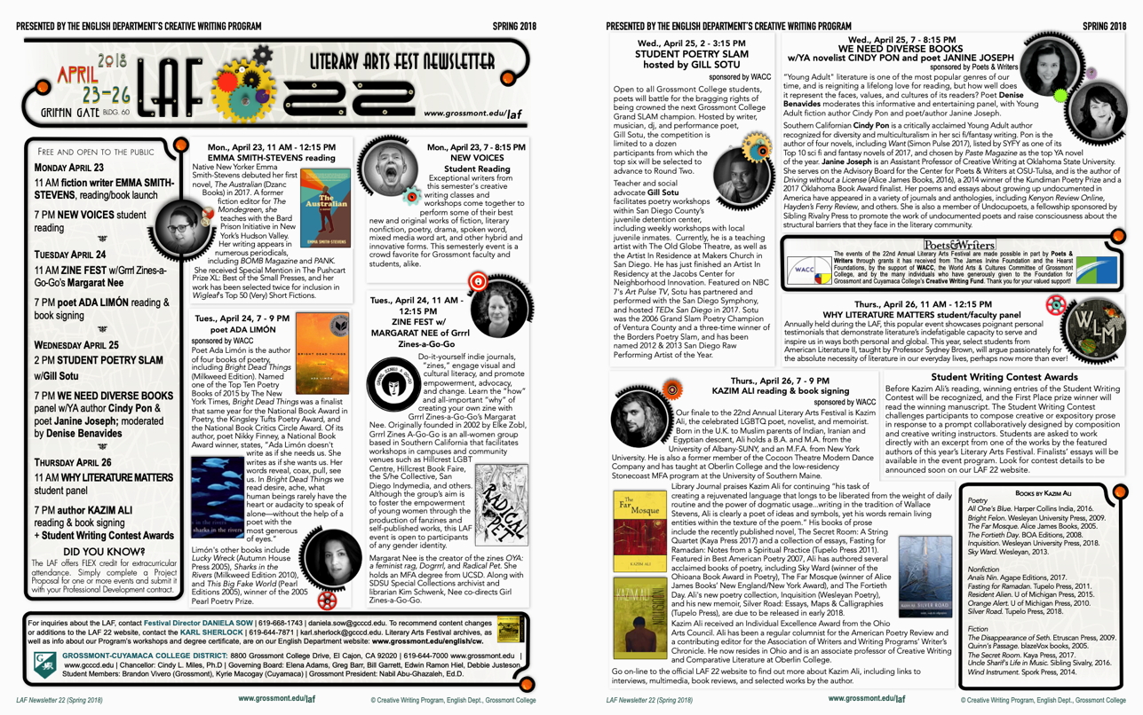 Foundation for Grossmont and Cuyamaca College’s Creative Writing Fund.