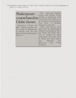 Playwright, poet, and composer, GEORGE KIRAZIAN, was a charter faculty member, early English Department Chair, and co-founder of Grossmont College’s first literary magazine, Talon. |