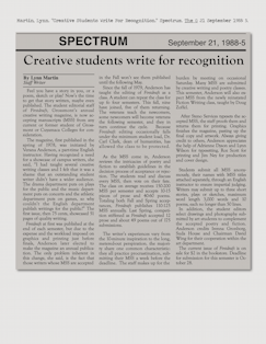 Poet, author, and former Department Chair RUTH ANDERSON led the Poetry Writing workshops for many years and contributed to the launch of the College's first readings series.