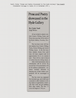 Fiction writer and poet STEPHANIE MOOD, much loved for many years as the Department’s Short Fiction Writing workshop instructor, is the charter coordinator of the Creative Writing Program and founder deluxe of the Literary Arts Festival. Here tireless and inventive efforts to produce the Festival raised the bar on literary events on our campus. |