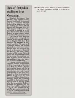 CHESTER H. PALMER, who transitioned from his position as charter English Department faculty to the administrative position of Evening Division Dean, was also the faculty advisor and co-founder of Talon, Grossmont College’s very first student-edited literary magazine. It lasted only two issues, but Palmer lives on as the inspiration for the name, Chest-O-Drawers Press. |