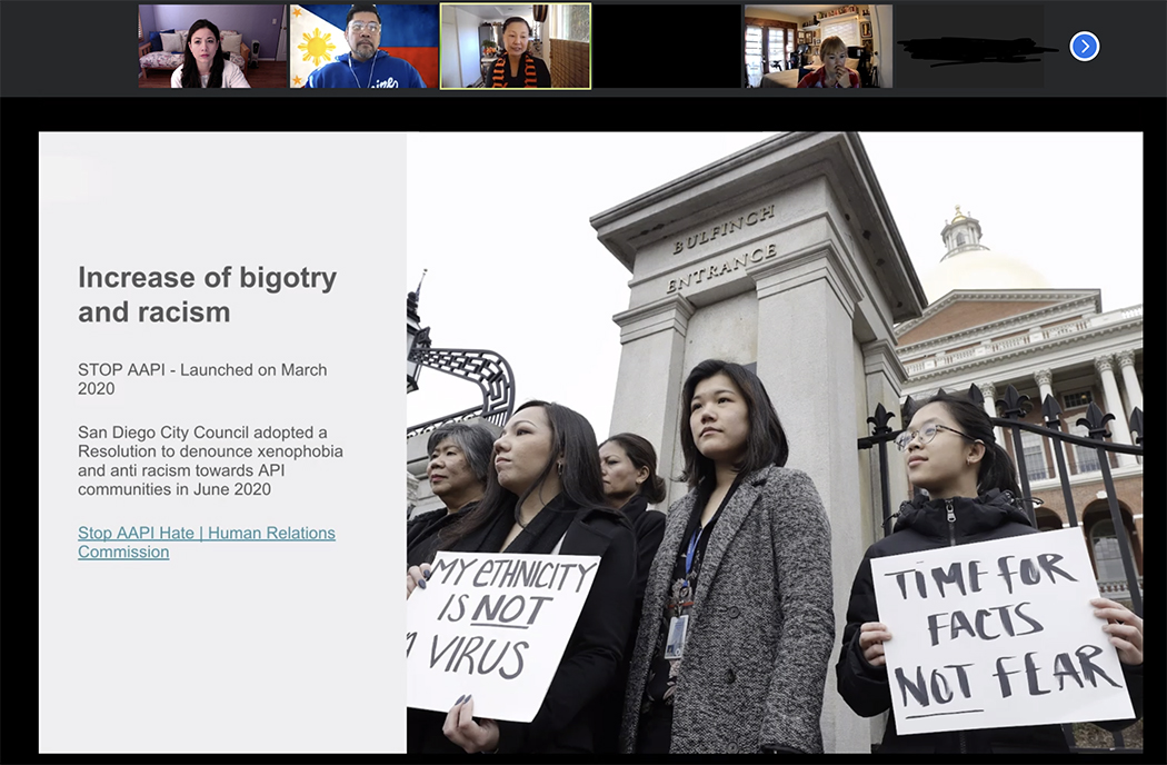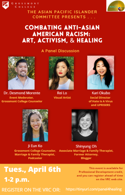 Panelists: Rei Lo, Artist; Kari Okubo, Social Director - Hate is a Virus; Ji Eun Ko, Grossmont College Counselor; and Shinyung Oh, Therapist & Attorney