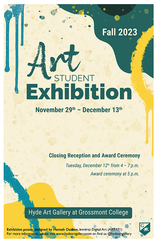 Links to our social media and to sign up for the Hyde Art Gallery mailing list are below. If you have any questions, please reach out anytime to gallery director Alex DeCosta, alex.decosta@gcccd.edu