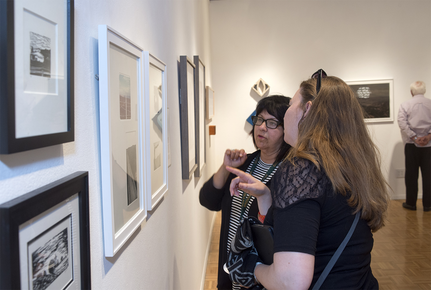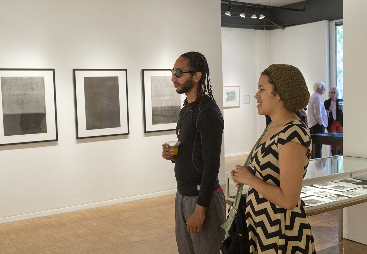 The artists in this exhibition are not only printmakers; they bring a vast variety of expertise from other fields: photography, painting, ceramics, sculpture, bookmaking, installation, and performance. While they respect the history of printmaking and the long-held traditions of the medium, they also poke at the edges of the medium as they each seek to expand existing boundaries with a unique and compelling approach to their work. The pieces in this exhibition explore a wide array of topics: beauty and the sublime, narrative, history, identity and culture, memory, intuition, and place. The works are minimal, structural, atmospheric, flat, playful, layered, and certainly varied.