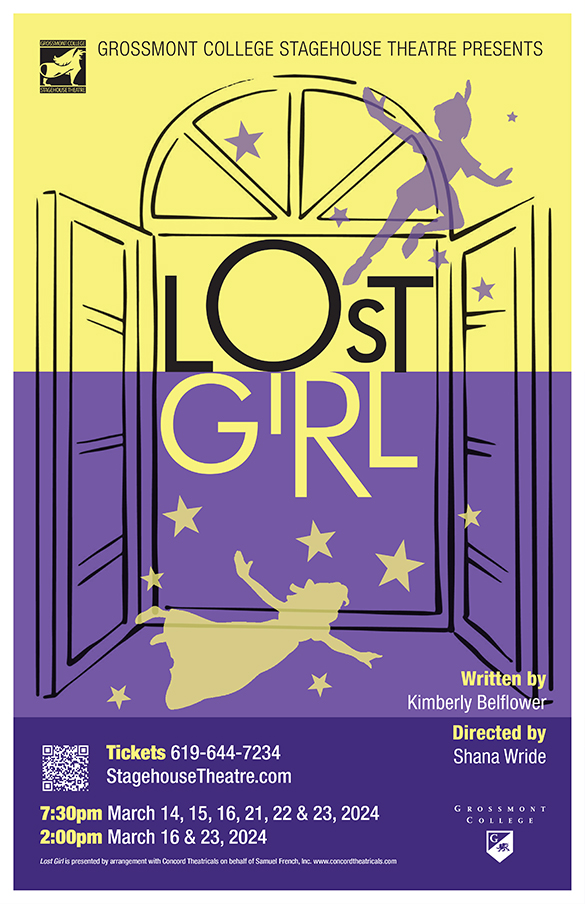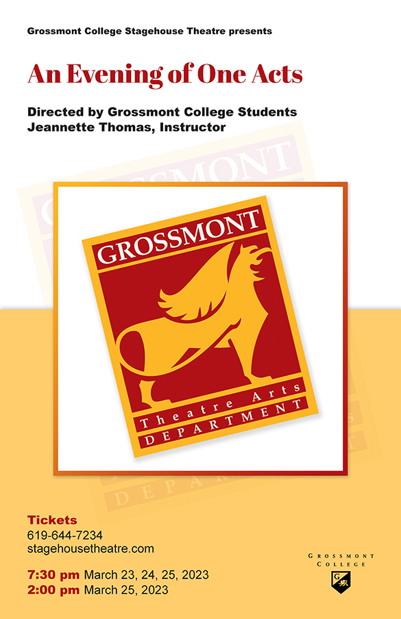 The Theatre Arts Department at Grossmont College annually produces four main stage productions per year in the Stagehouse Theatre. In addition, our season includes the annual Children’s Touring show, the high school outreach tour, "Inside the Actor's Process", and fundraisers in the Fall and Spring semesters.